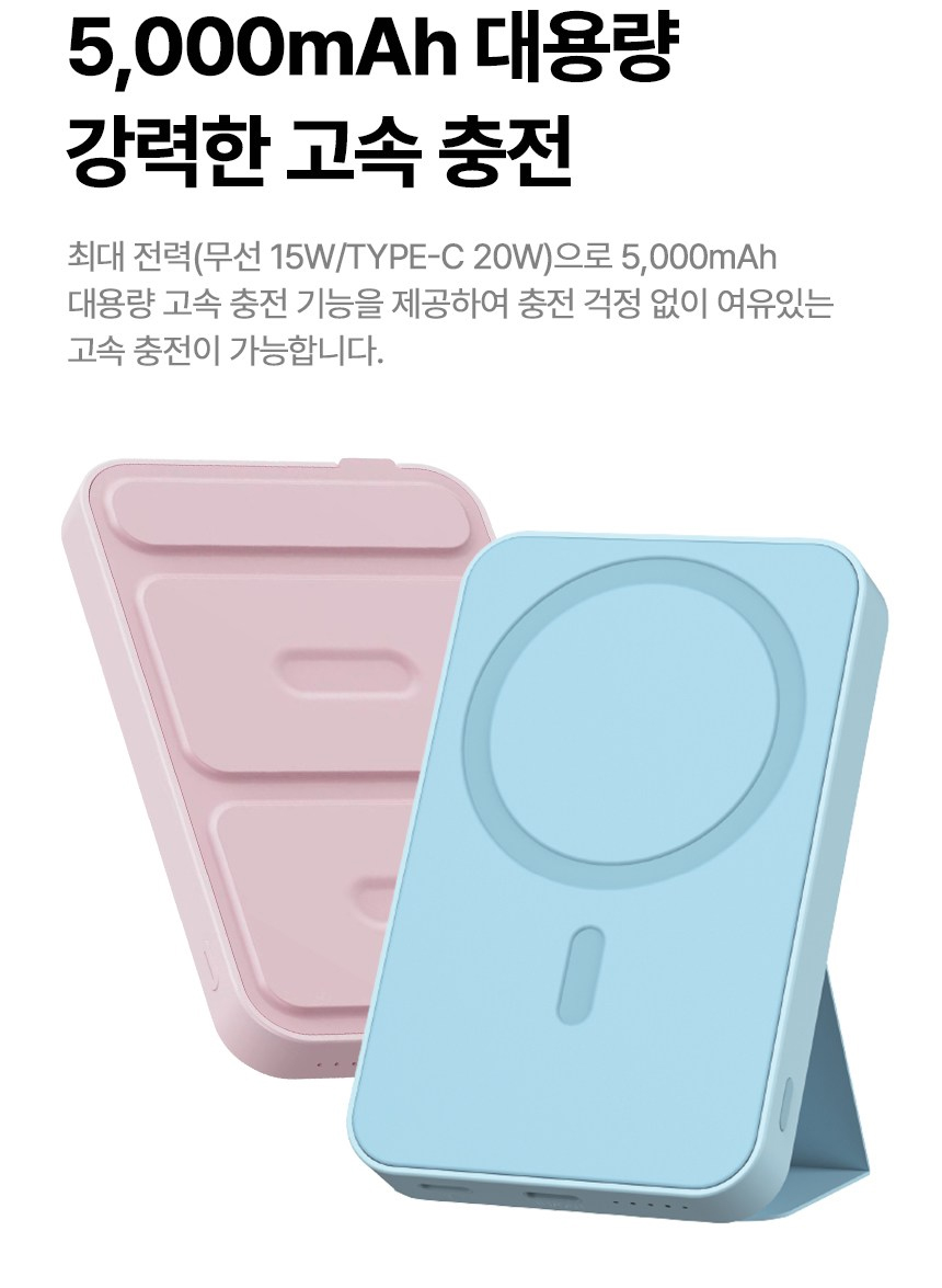 상세 디자인 색상 정보는 링크에서 확인 진행하며 본인 취향 맞는 선택하시기 바랍니다. 로랜텍 파스텔 스탠드 고속 무선충전 맥세이프 보조배터리 5000mAh 활용해 스마트한 충전 환경 만들어보세요.